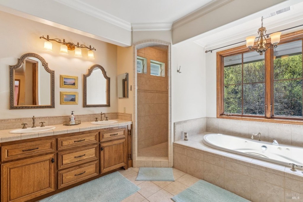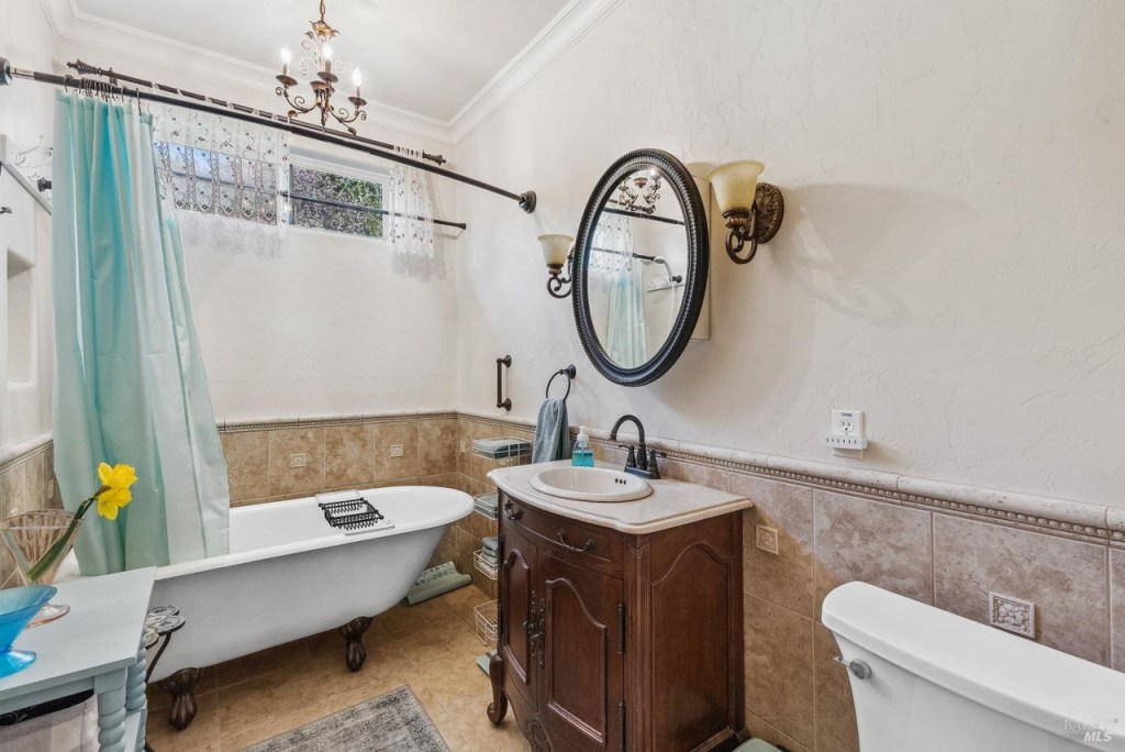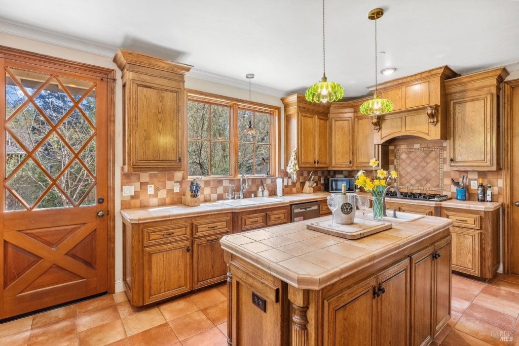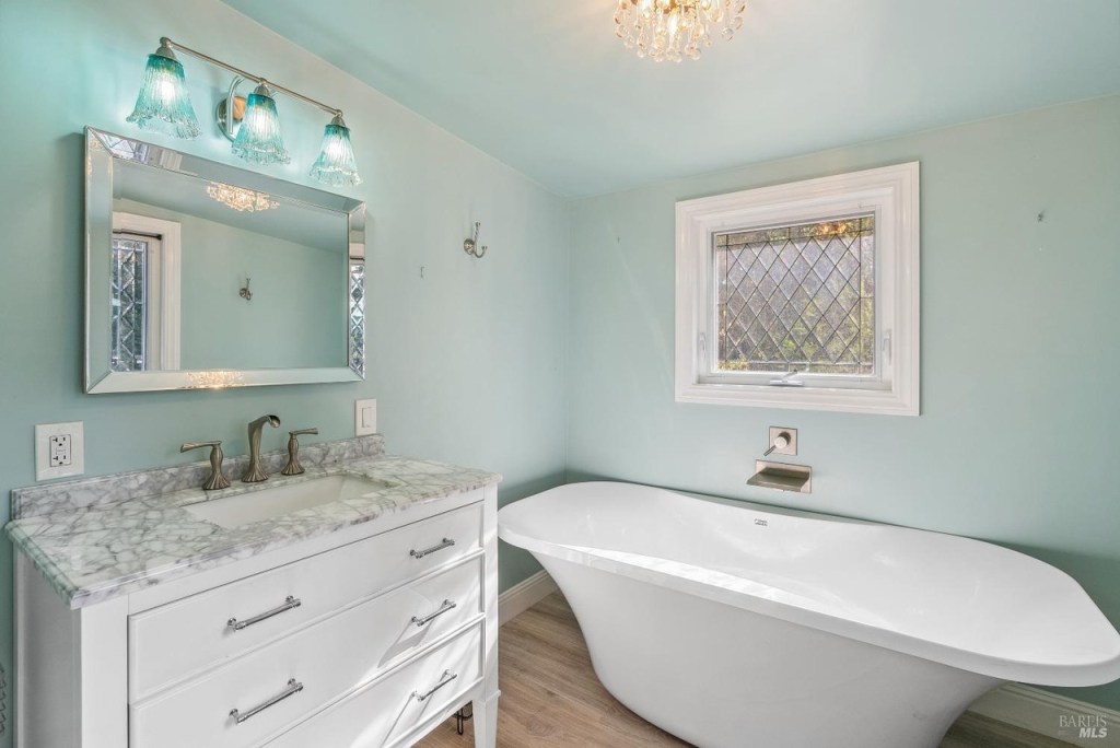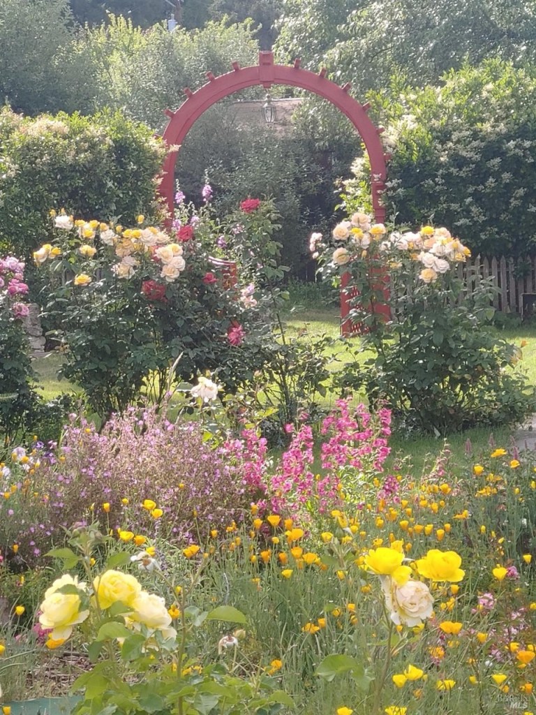 This large and fully furnished French Farmhouse is just a short walk from the Russian River, with the babbling Pocket Canyon Creek meandering through the property. A classic wooden bridge takes you across the creek to the “Wedding Meadow”, a two acre plus sunny grass meadow surrounded by towering redwoods and bays filling the property with fresh oxygen and fragrances of the forest. Prolific blossoming gardens surround the home on all sides, and offer fresh bouquets for the home. Eight solar roof panels were recently installed and cut the electric bill by half!