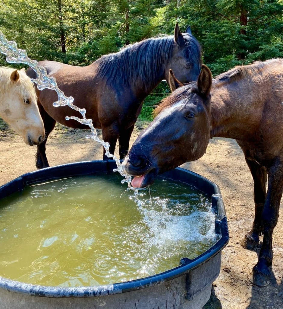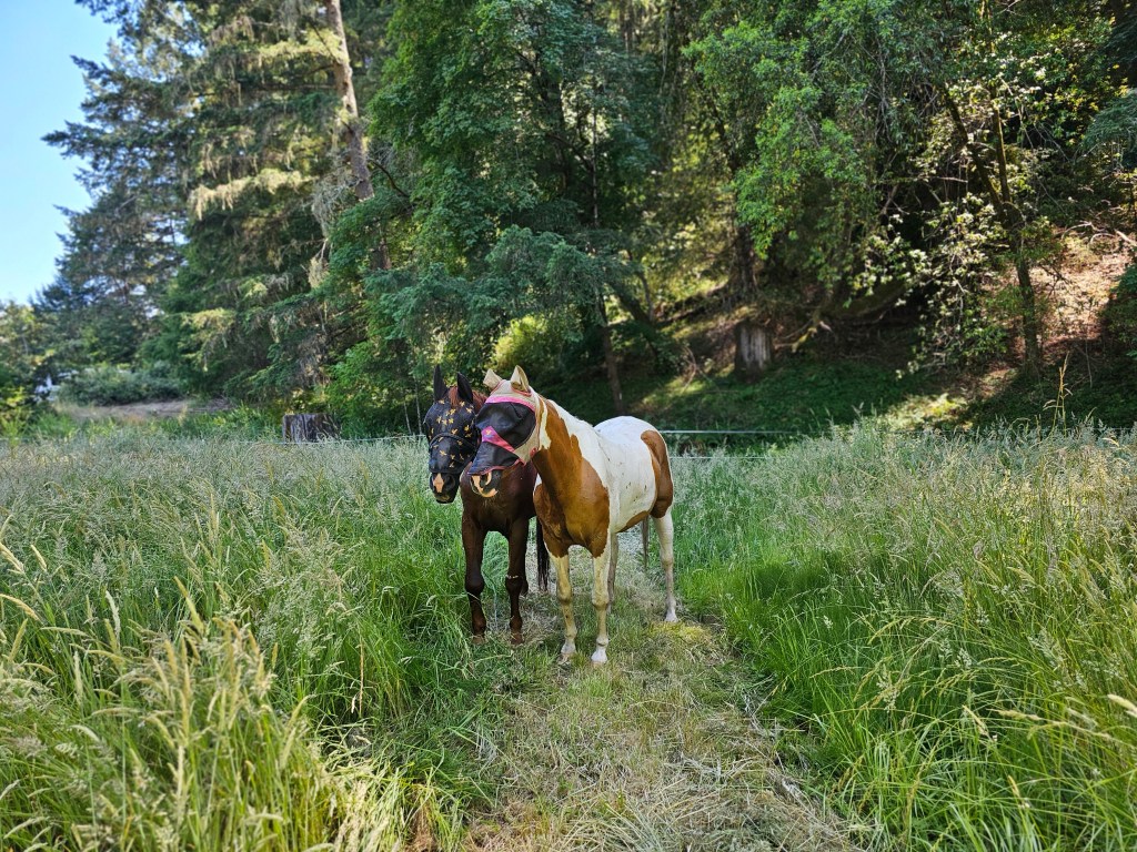 The previous tenant ran a horse rescue on the property and there are 2 fully fenced pastures, one featuring 5 horse shelters with stall mats, and with multiple gates. There’s a red and white painted pair of outbuildings for the horses. One is a tack room with shelving and the other is a hay barn which can fit 12 bales at once. A short ride to River trails!
