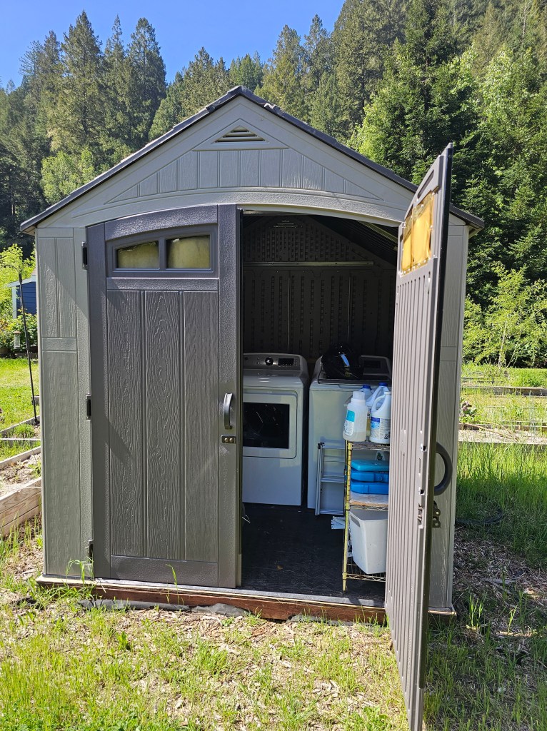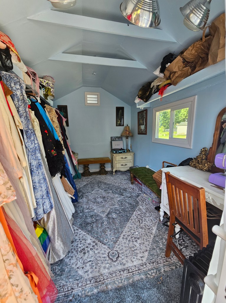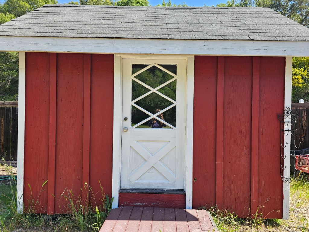 OUTBUILDINGS – The property features 3 large fully finished and insulated sheds, two of which are also painted the idyllic red and white on the outside and are carpeted as well as painted inside with windows and have been used as; a large fancy art studio, one is a baby blue yoga studio with white trim and large window and window paneled door, and the third is a home office with creek view that is so beautiful, you will want to make it your bedroom! The fourth shed is all wood and attached to the large wooden bridge and was used as storage and pump house. There is also a resin garden shed for additional tool storage. There are two more red and white metal storage sheds, one is used for horse tack storage, and one has been a hay and grain storage. They are both near the main entry gate of the horse pasture.