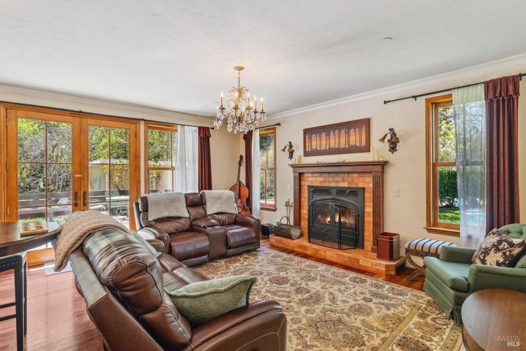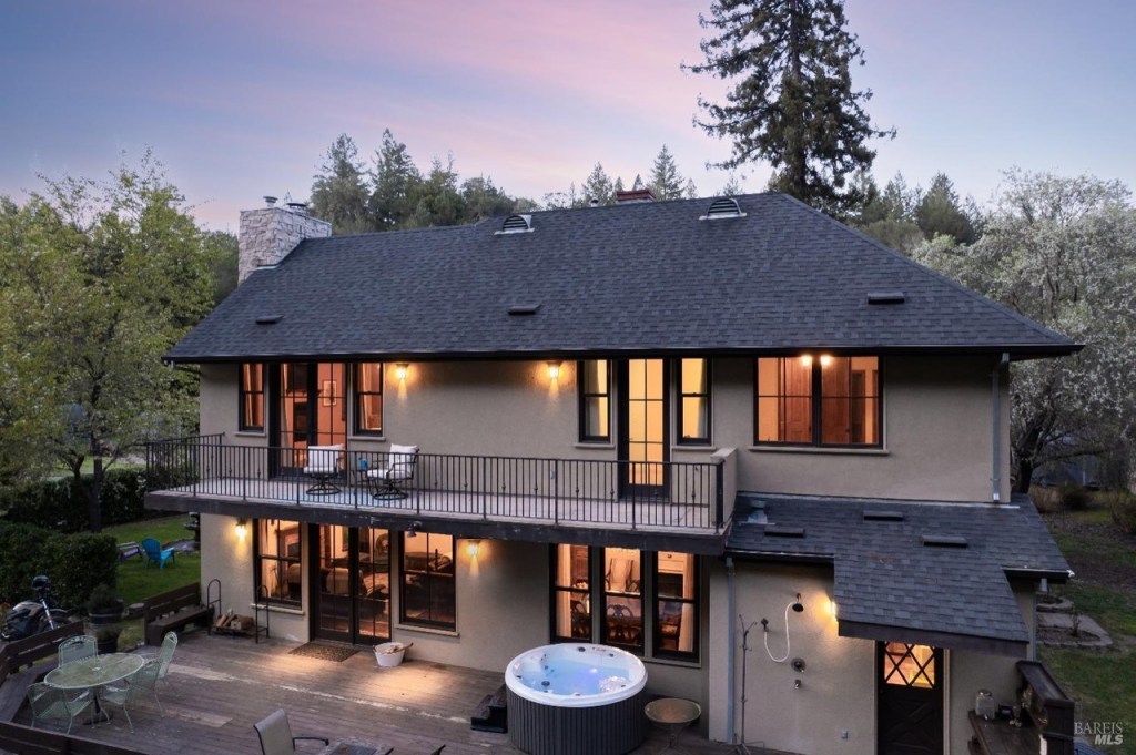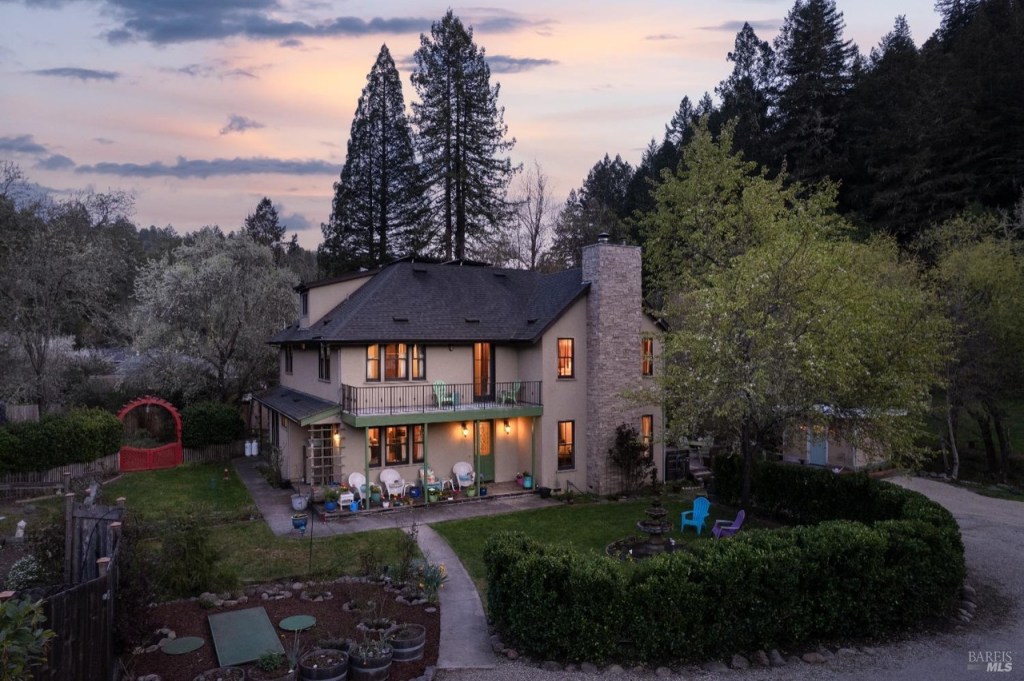 A Sonoma County Estate home set in a grassy, sunny meadow, surrounded by wineries and redwoods, and featuring Pocket Canyon Creek running through the center of the nearly 5 acre property.